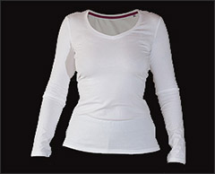 Dehnbare Doppelziernaht an Ärmeln und Saumabschluss